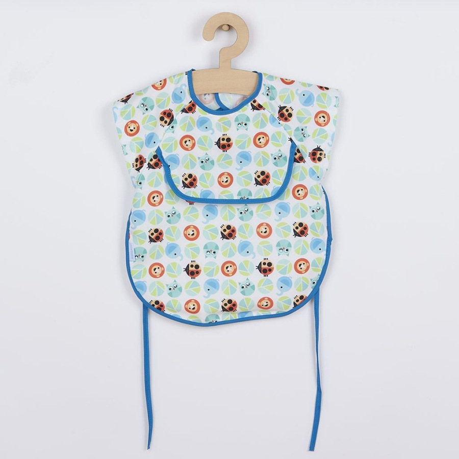 Detský podbradník-zástera New Baby účinne ochráni oblečenie vášho dieťaťa pred ušpinením pri jedle a hraní. Vyrobené z ľahkého, mäkkého materiálu. Podbradník má pohodlné zapínanie na suchý zips a má praktické vrecko. Podbradník je ušitý z dvoch vrstiev materiálov. Spodná vrstva je z nepremokavého materiálu. Pri zašpinení je možné podbradník utrieť vlhkou handričkou, alebo prať v práčke. Charakteristika