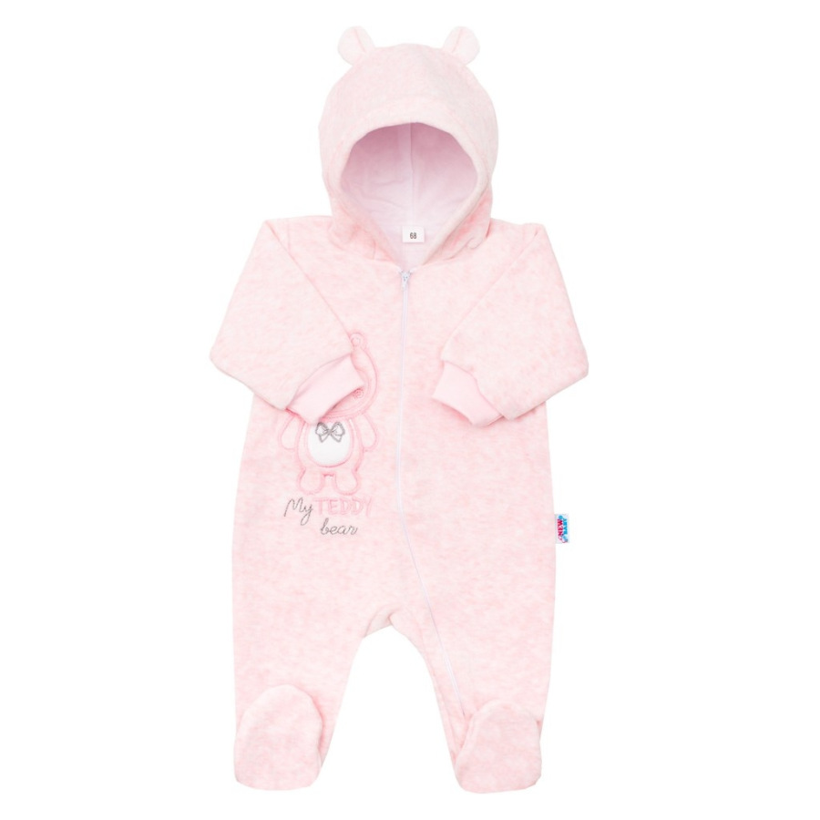 Dojčenský semiškový overal s kapucňou New Baby Sweetheart ružový 68 (4-6m)