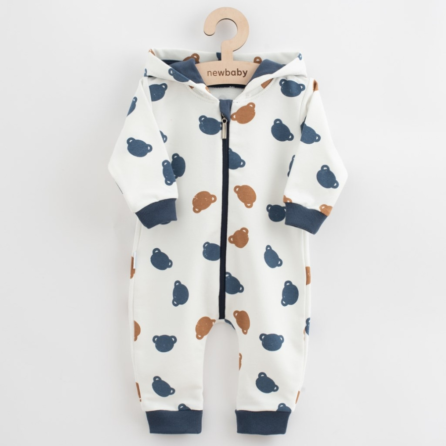 Roztomilý a praktický overal s kapucňou New Baby Little One. Overal je celopotlačený medvedíkmi, má zapínanie na zips po celej dĺžke a pružné lemy na rukávoch a nohavičkách. Kapucňa je podšitá farebnou podšívkou a je zdobená roztomilým brmbolcom. Overal je vyrobený z pohodlnej teplákoviny. Vhodný na celoročné nosenie. Materiál: 96% bavlna, 4% elastan.