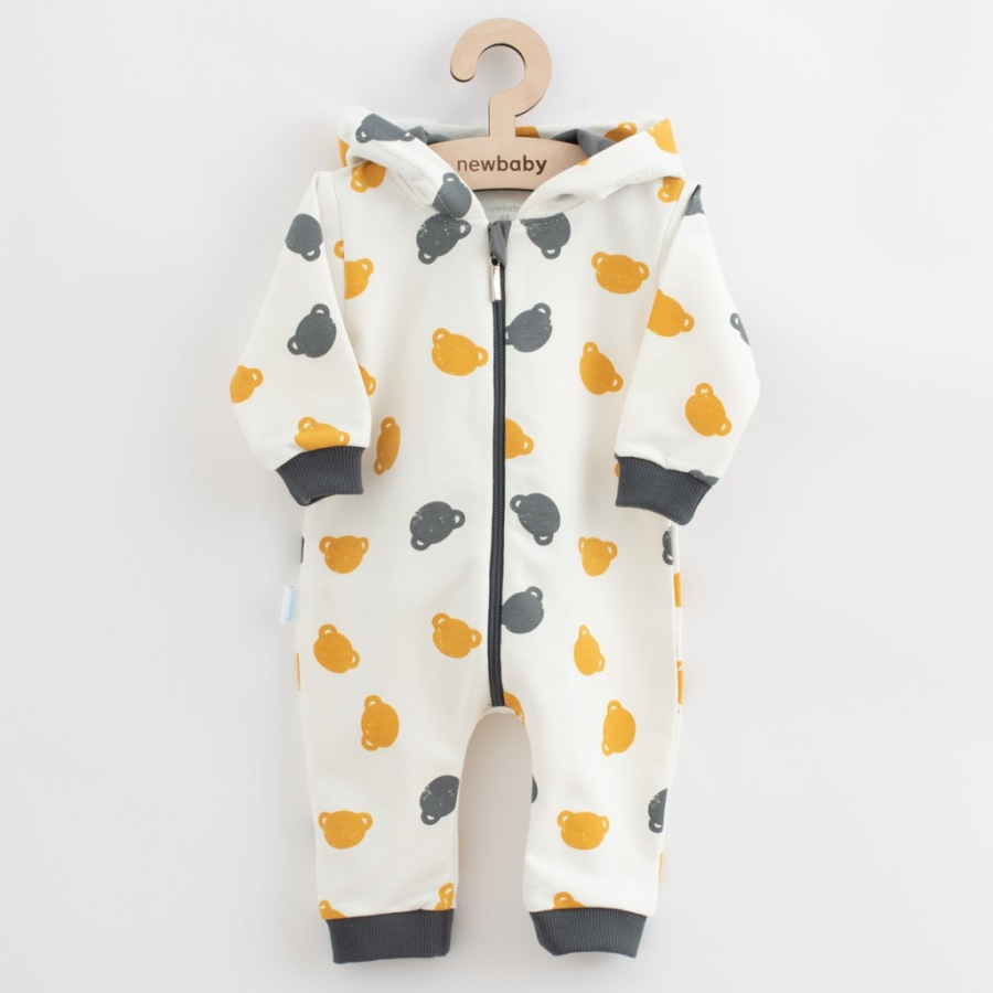 Roztomilý a praktický overal s kapucňou New Baby Little One. Overal je celopotlačený medvedíkmi, má zapínanie na zips po celej dĺžke a pružné lemy na rukávoch a nohavičkách. Kapucňa je podšitá farebnou podšívkou a je zdobená roztomilým brmbolcom. Overal je vyrobený z pohodlnej teplákoviny. Vhodný na celoročné nosenie. Materiál: 96% bavlna, 4% elastan.