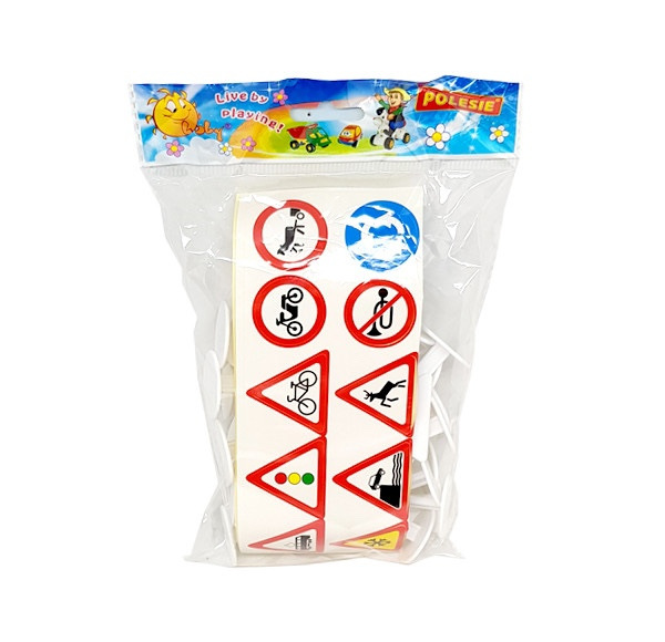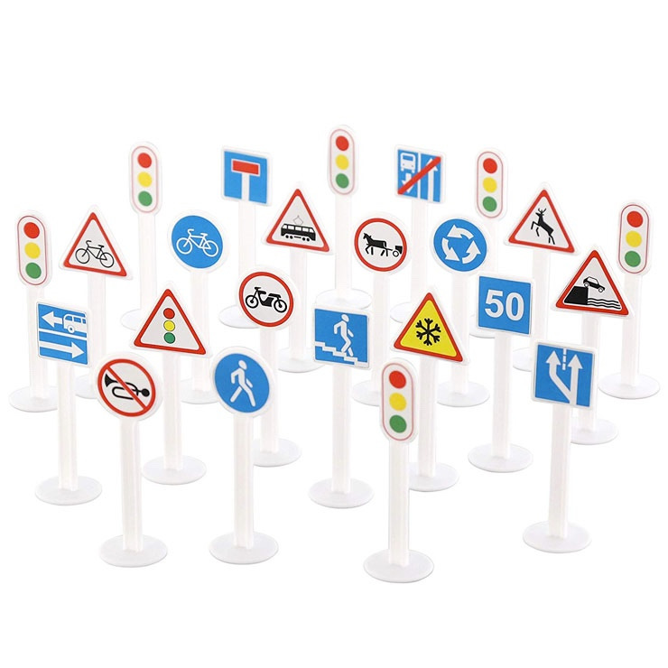Dopravné značky, v balení je 24ks značiek 9,5 cm vysokých a nálepky na značky.