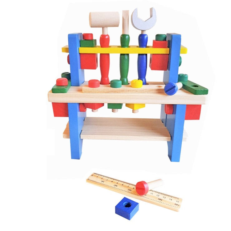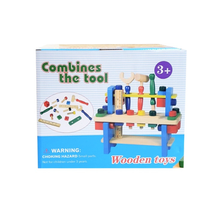 Čo sa za mladi naučíš..... Drevený stojan s náradím pre malého kutila. Balenie obsahuje stojan na náradie, skrutkovač, kladivo, kľúč, meter, sktrutky s maticami a doštičky na spájanie.