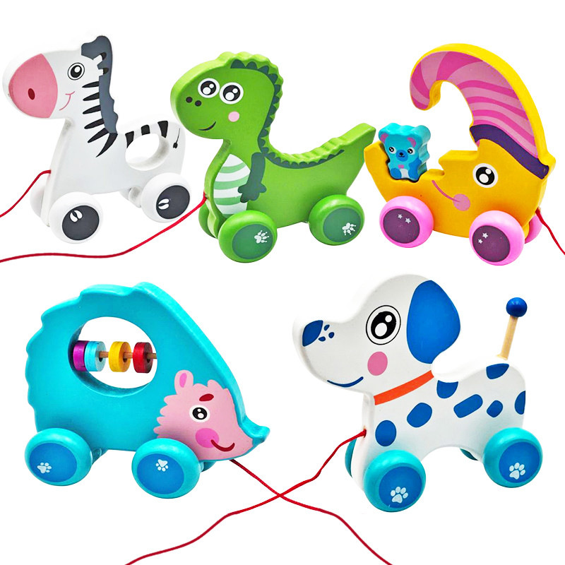 Drevené ťahacie zvieratko, hračka na kolieskach, ktorá povzbudzuje deti k pohybu a rozvíja ich predstavivosť pri hre. Na výber je až z piatich druhov zvieratka. Má rozmery 13×12 cm. Cena je za kus. Vhodné pre deti vo veku 3+ rokov.