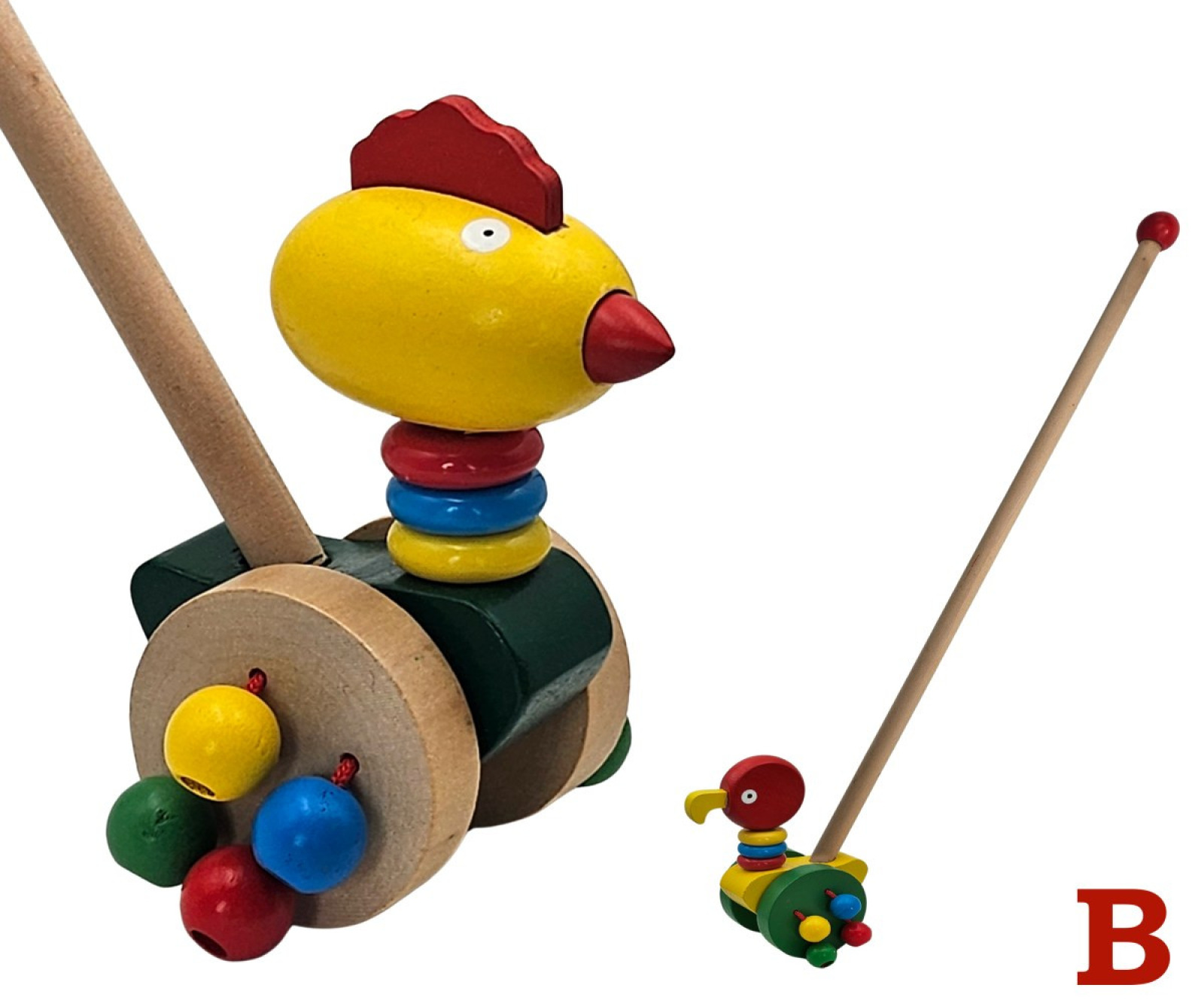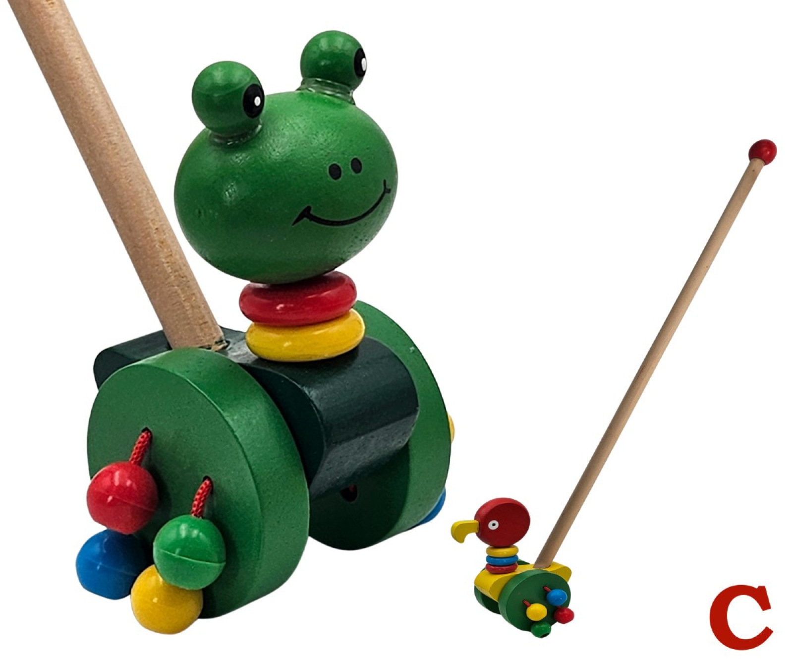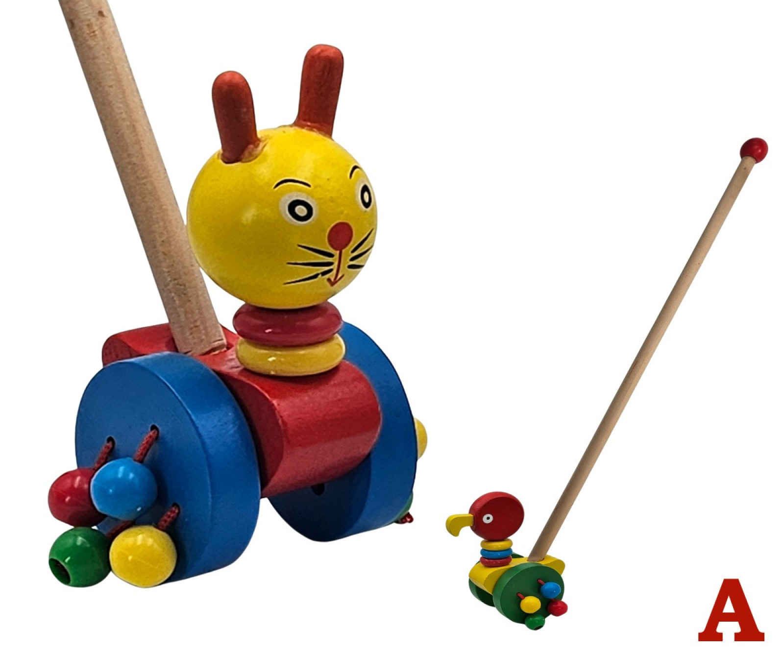 Drevené zvieratko na paličke, hračka, s ktorou sa deti môžu prechádzať a sledovať, ako sa zvieratko pohybuje spolu s nimi. Na výber je zo šiestich druhov. Má rozmer 54 cm. Cena je za kus. Vhodné pre deti vo veku 3+ rokov.