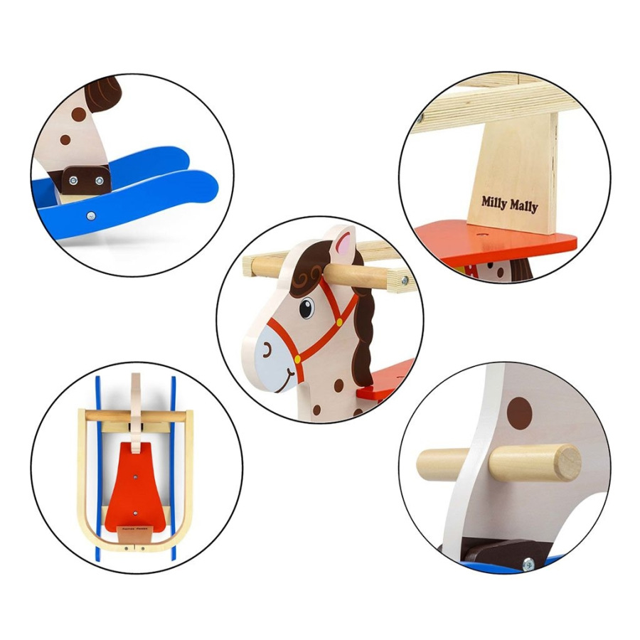 Jedinečný hojdací kôň Lucky od Milly Mally. Navrhnutý tak, aby vyhovoval potrebám každého fanúšika koní. Všetky deti milujú hojdanie na koníkovi... pripomína im hojdanie v maminom náručí. Naša hračka je vyrobená z dreva, materiálu, ktorý je dnes vyhľadávaný pre svoj nadčasový vzhľad.