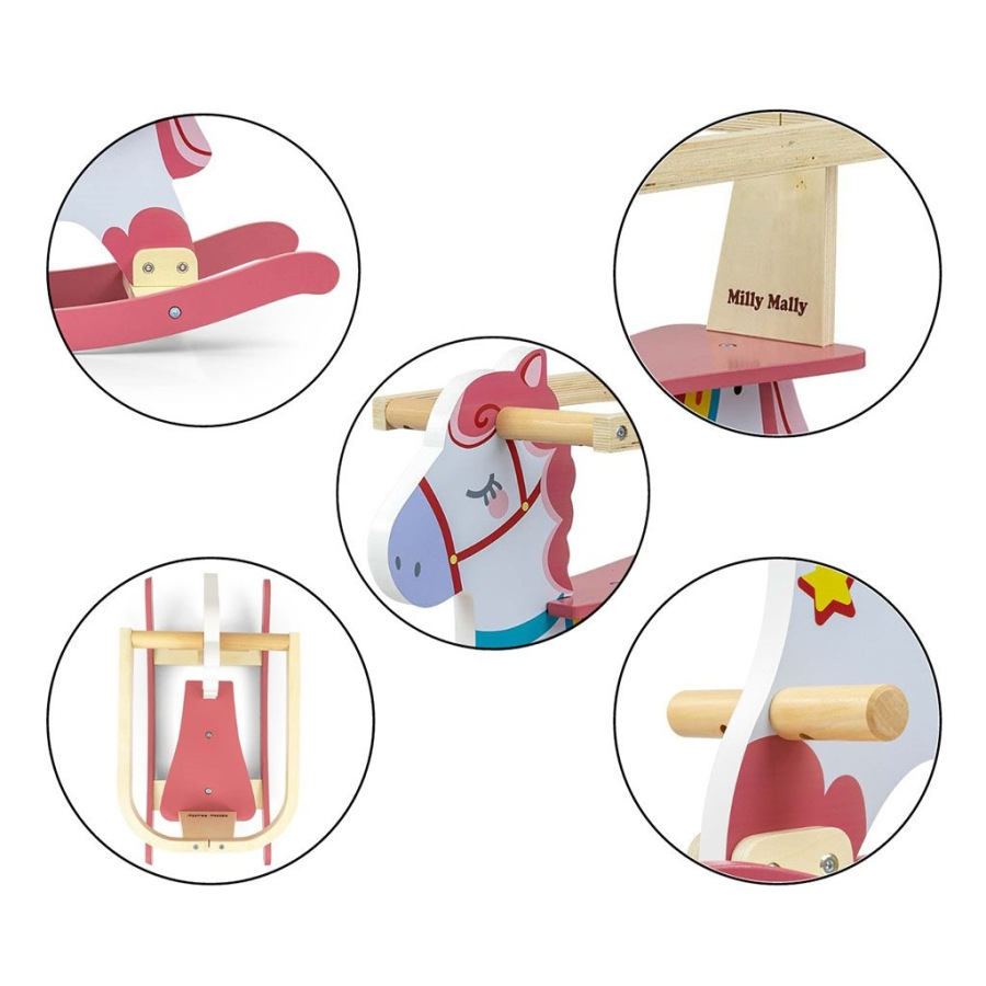 Jedinečný hojdací kôň Lucky od Milly Mally. Navrhnutý tak, aby vyhovoval potrebám každého fanúšika koní. Všetky deti milujú hojdanie na koníkovi... pripomína im hojdanie v maminom náručí. Naša hračka je vyrobená z dreva, materiálu, ktorý je dnes vyhľadávaný pre svoj nadčasový vzhľad.
