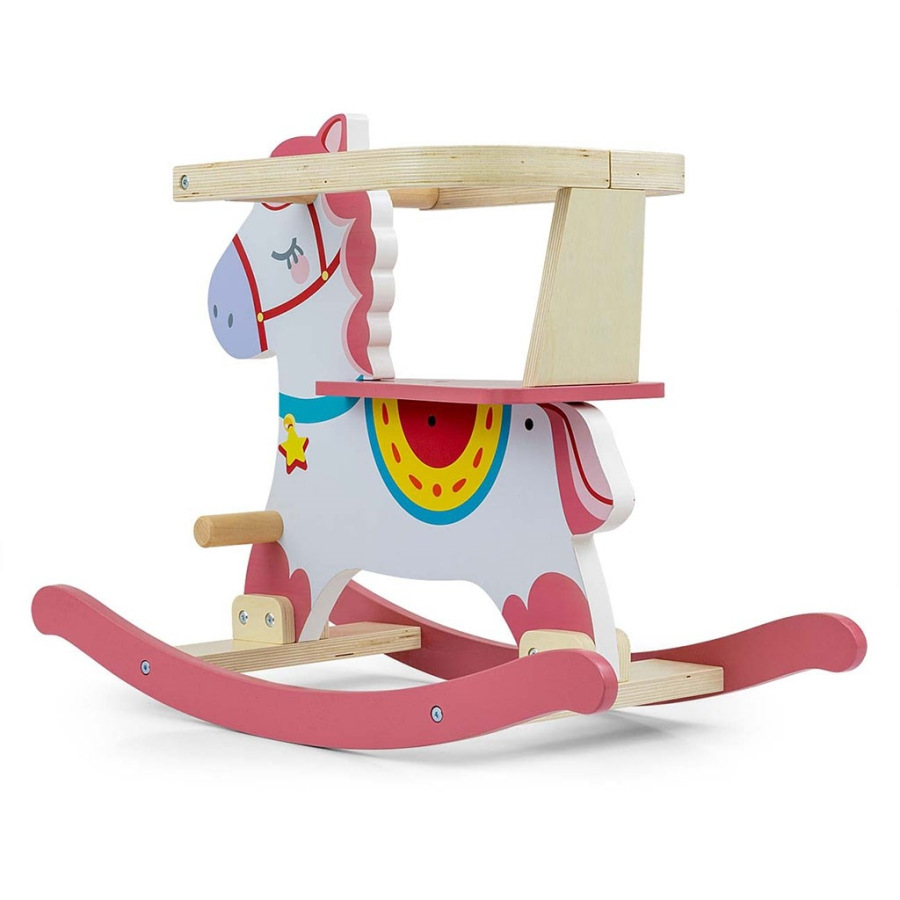 Drevený hojdací koník s operadlom Milly Mally Lucky 12 ružový