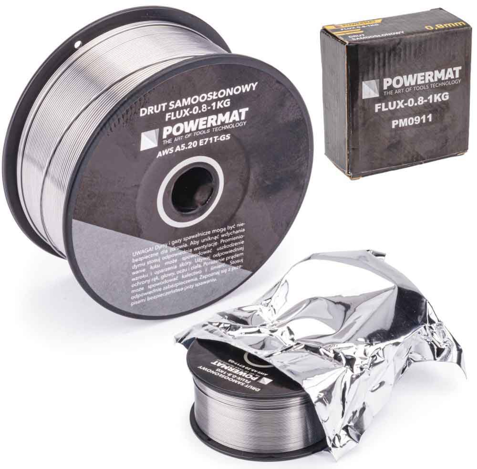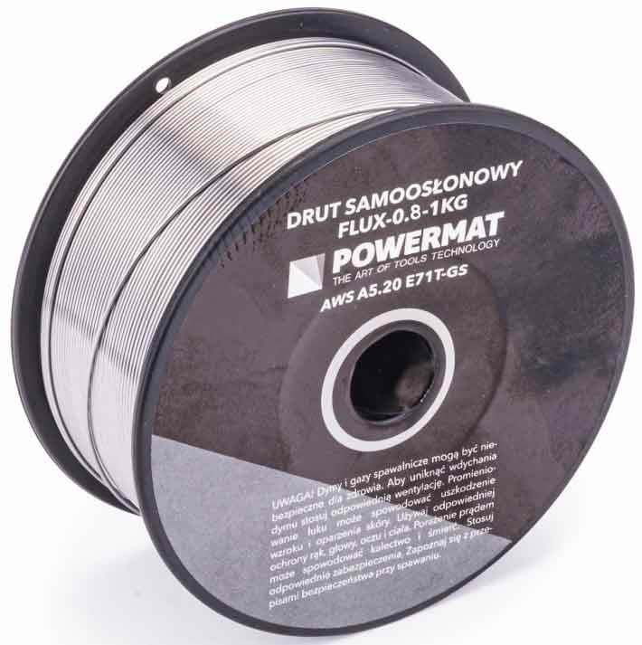 Trubičkový zvárací drôt priemer 0,8 mm / 1 kg E71T-GS od Powermat je určený na zváranie bežných a vysokopevných uhlíkových ocelí do 510 MPa.