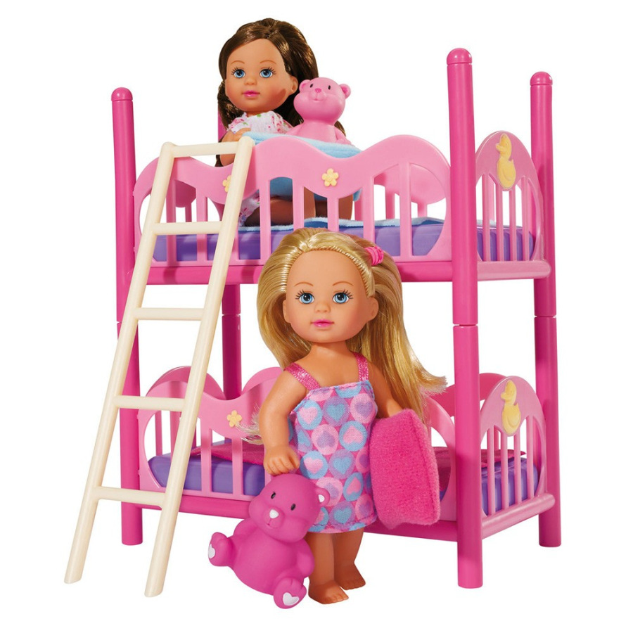 Sada dvoch paničiek Evička v pyžame s poschodovou posteľou prinesie deťom zábavnú hru na spánok a každodenný režim. Súčasťou balenia sú dve panenky, poschodová posteľ, dva vankúše a dve deky, vďaka čomu si deti môžu vytvárať vlastné príbehy z domáceho prostredia. Panenky majú výšku približne 12 cm a hra podporuje fantáziu, kreativitu aj sociálne zručnosti.