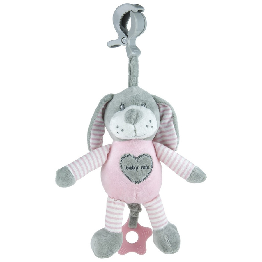 Edukačná hrajúca plyšová hračka s klipom Baby Mix pes rúžový
