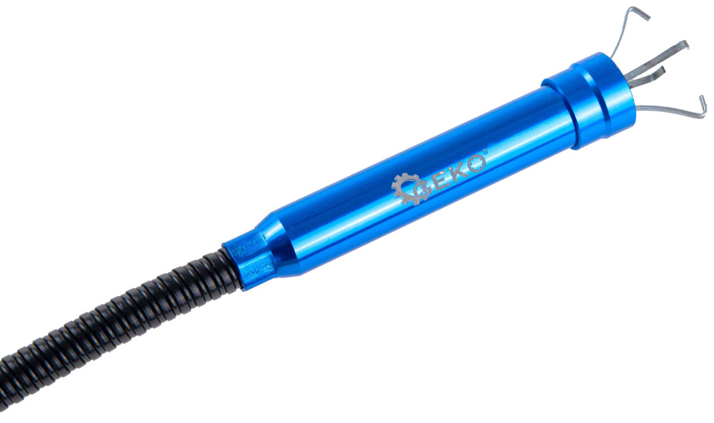 - LED podsvietenie – Na konci chápadla sa nachádza vstavané LED svetlo, ktoré sa aktivuje tlačidlom. Osvetlenie pracovného priestoru zaisťuje dobrú viditeľnosť aj v tmavých priestoroch, ako je napríklad motorový priestor alebo za nábytkom.