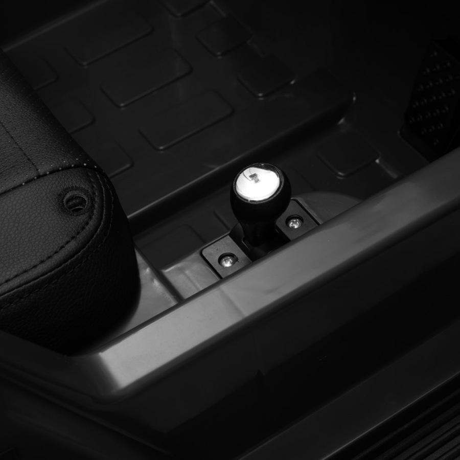 Autíčko je vybavené dvoma výkonnými 30W motormi a batériou 12V4.5Ah, čo umožňuje plynulú jazdu s možnosťou voľby medzi vysokou a nízkou rýchlosťou. Všetky štyri kolesá sú odpružené, čo zaručuje pohodlnú jazdu aj na nerovnom povrchu.