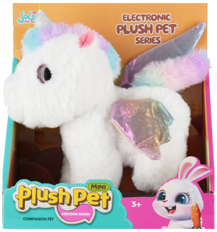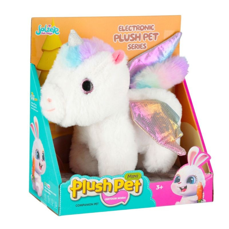 Elektronický plyšový jednorožec je magický spoločník pre každé dieťa, ktoré miluje rozprávky a fantáziu. Mäkký, pestrofarebný a interaktívny jednorožec vydáva po zapnutí príjemné zvuky cvalu, ktoré vytvárajú čarovnú atmosféru počas hry. Ideálny darček pre všetkých malých milovníkov kúzelných zvieratiek. Hračka vyžaduje 2 batérie typu AA sú súčasťou balenia. Odporúčané od 3 rokov. Cena za kus.