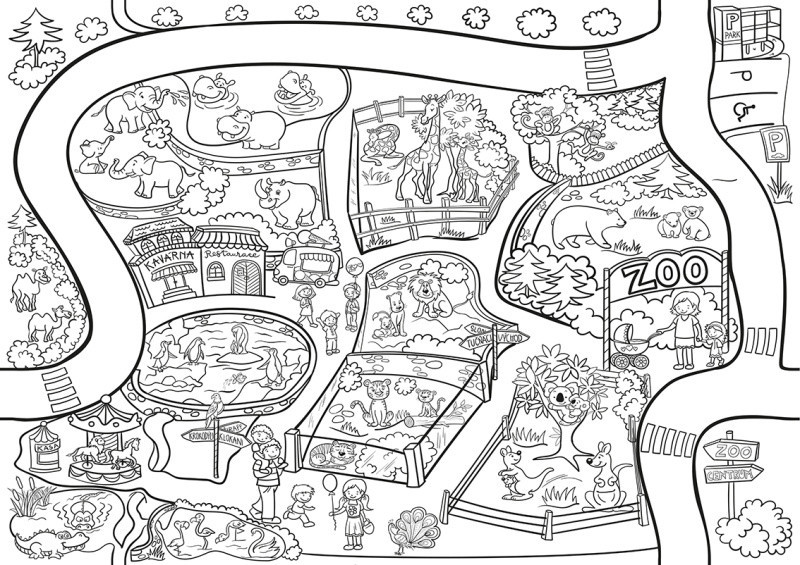 Fakt velká omalovánka Zoo, omaľovánka má rozmer 64 x 90 cm. Papier má vysokú gramáž 200 g, preto môžete zvoliť na omaľovanie pastelky, voskovky alebo aj vodové farby. Pri zakúpení všetkých 6 typov omaľovánky, ich možno spojiť do jedného veľkého diela prepojeného cestou.