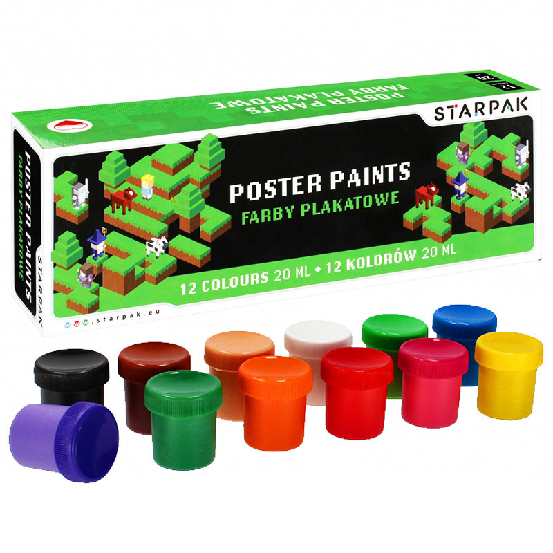 Farby Pixel, balenie má rozmery 23x4x8 cm. Obsahujú 12 farieb v 20ml nádobách. Cena je za 12 farieb v balení. Vhodné pre deti vo veku 3+ rokov.