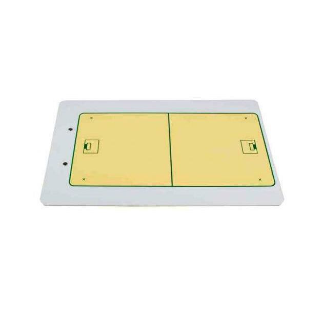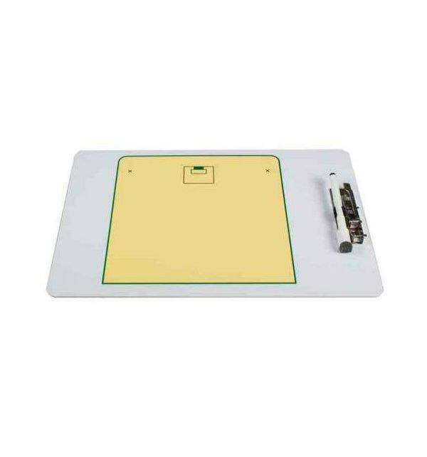 Menšia taktická tabuľa na florbal. Tréner tak môže na striedačke v rýchlosti vysvetliť taktiku. Na jednej strane tabule je len polovica ihriska, na druhej strane je ihrisko celé. Tabuľka má klipsňu na fix, ktorý je tiež súčasťou balenia.