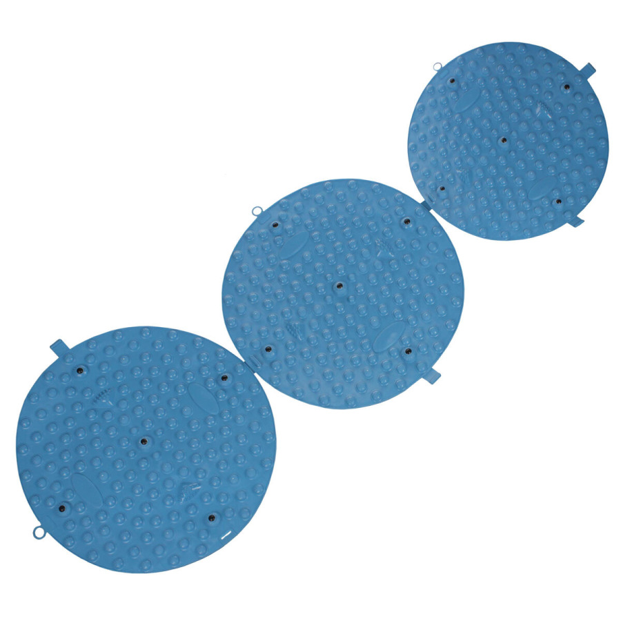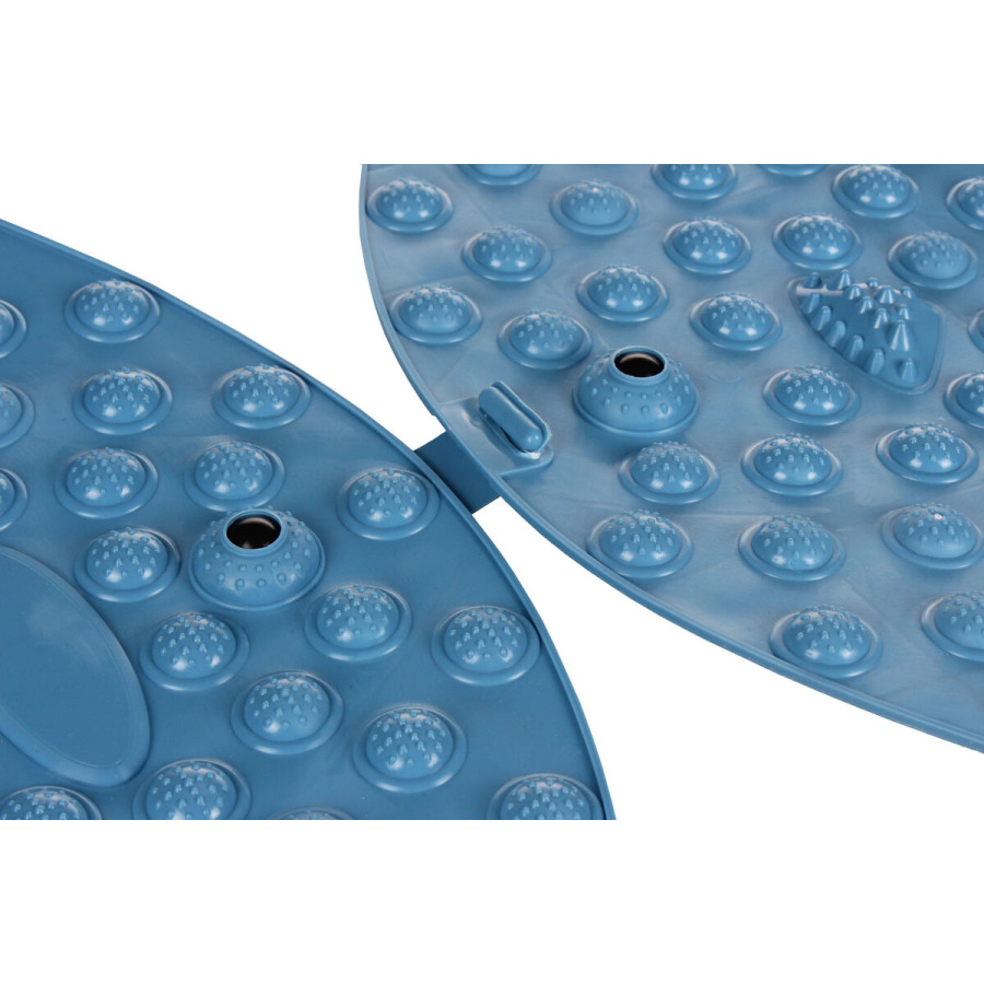Masážna podložka Merco Foot Massage Circle 45 je skvelou pomôckou na masáž chodidiel, celkovú relaxáciu a uvoľnenie svalov. Podložka v tvare kruhu s priemerom 45 cm je vyrobená z tvrdšieho pevného TPE materiálu a je opatrená tromi druhmi masážnych výstupkov, ktoré stimulujú, preťahujú a uvoľňujú kľúčové svaly a šľachy na chodidlách, klenbe a prstoch. Stačí sa na podložku počas dňa niekoľkokrát postaviť a pohybovať sa na nej. Tým si jemne namasírujete chodidlá, čím vyšlete signály na úľavu od bolesti do celého tela, podporíte svoj krvný obeh, zbavíte sa stresu a toxínov, zlepšíte metabolizmus a zvýšite tak svoju energiu a uvoľníte sa.