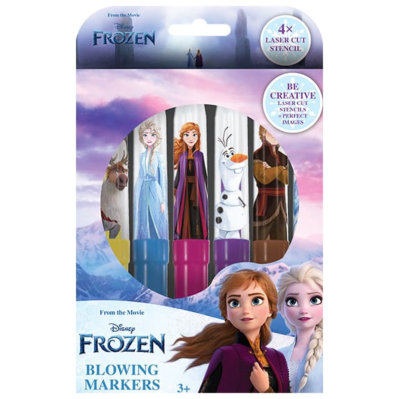 Fúkacie fixky Ľadové kráľovstvo, balenie obsahuje 6 farebných fúkacích fixiek s potlačou a 4 farebné papierové šablónky v obľúbených rozprávkových motívoch. Má rozmery 188 X 120 X 22 mm. Cena je za balenie. Vhodné pre deti 3+.