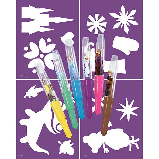 Kreatívna sada s obľúbeným motívom Ľadové kráľovstvo obsahuje 6 farebných fúkacích fixiek a 4 papierové šablónky. Deti si s nimi môžu jednoducho vytvárať vlastné obrázky, ozdoby či pozdravy. Ideálna pomôcka na rozvoj fantázie, trpezlivosti a jemnej motoriky. Vhodné pre deti od 3 rokov.
