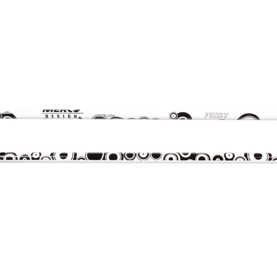 Detské zjazdové palice Merco Funky JR sú určené pre lyžiarov s výškou postavy od 105 cm do 150 cm. Juniorské lyžiarske palice Merco Funky JR sú vyrobené z hliníkovej zliatiny 6061, ktorá je ľahká rovnako ako obyčajný hliník, navyše však vyniká pevnosťou a dostatočnou tvrdosťou. Detské lyžiarske palice sú vybavené anatomicky tvarovanou plastovou rukoväťou, aby boli príjemné v ruke a dobre sa držali, a nastaviteľnými pútkami z pevného nylonu. Súčasťou juniorských zjazdových palíc Merco Funky JR sú aj malé tanieriky na upravenú zjazdovku, ktoré si môžete ľahko vymeniť bez použitia náradia a tiež oceľové hroty, ktorý Vášmu malému lyžiarovi zaručí oporu v každom teréne. U páru palíc s dĺžkou 90 cm uvádza výrobca ich celkovú hmotnosť 385 g. Juniorské zjazdové palice Merco Funky JR sa vyrábajú v čiernobielom funky dizajne a v dĺžke od 80 cm do 105 cm po 5 centimetroch.