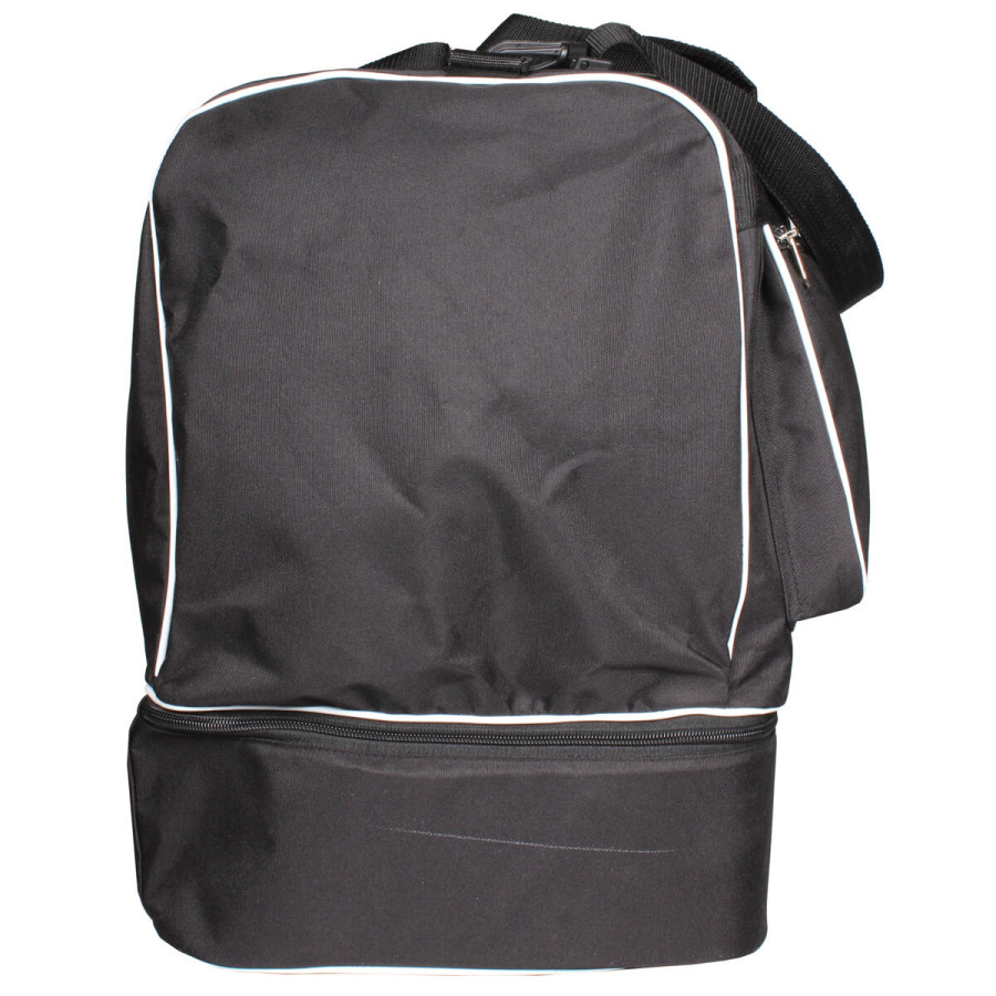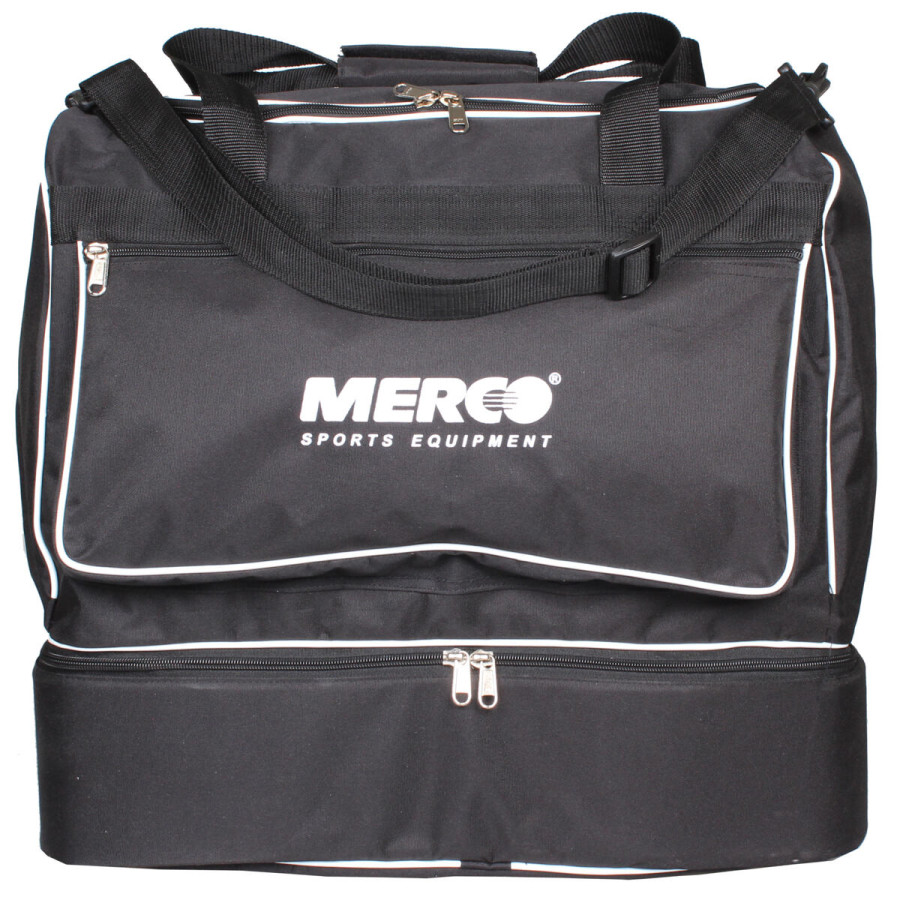Veľkoobjemová futbalová taška Merco vám pomôže dopraviť na ihrisko všetko, na čo si pred odchodom na tréning alebo zápas spomeniete. Táto športová taška je štandardne rozdelená na dve časti. Spodný, 12 centimetrov vysoký úložný priestor uzatvárateľný dvojitým zipsom, je určený pre obuv a špinavú bielizeň. Hlavný horný priestor má opäť dvojitý zips a neskutočný objem, ktorý doslova pohltí všetko vaše vybavenie. Ďalej je taška vybavená dvoma úchytmi do ruky, ktoré sa spájajú suchým zipsom, odnímateľným ramenným popruhom s polstrovaním a bočným vreckom pre osobné drobnosti alebo napríklad na desiatu. - rozmery: 50 x 30 x 44 cm