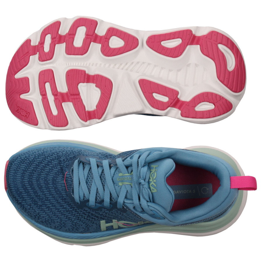 Piaty rad topánok na ceste a spevnené cesty Gaviota 5 ponúka nový stabilizačný systém H-Frame™, ktorý umožnil implementovať mäkšie peny ako kedykoľvek predtým. Hoka spojila intuitívnu základňu H-Frame s priedušným zvrškom z žakárovej tkaniny, ultra plyšovým golierom a tlmením na úrovni Bondi, aby vám zaistili klasický pohodlný zážitok z behania, a dodržali stabilitu bez kompromisov v oblasti odpruženia. - Plyšový jazyk a golier