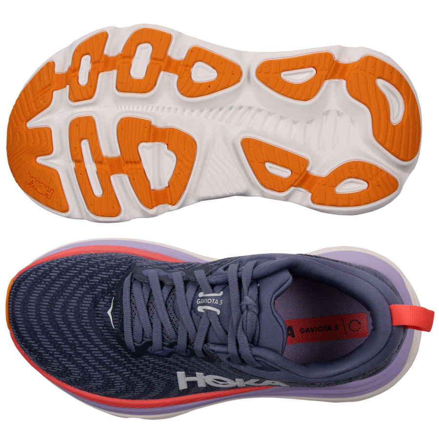 Piaty rad topánok na ceste a spevnené cesty Gaviota 5 ponúka nový stabilizačný systém H-Frame™, ktorý umožnil implementovať mäkšie peny ako kedykoľvek predtým. Hoka spojila intuitívnu základňu H-Frame s priedušným zvrškom z žakárovej tkaniny, ultra plyšovým golierom a tlmením na úrovni Bondi, aby vám zaistili klasický pohodlný zážitok z behania, a dodržali stabilitu bez kompromisov v oblasti odpruženia. - Plyšový jazyk a golier