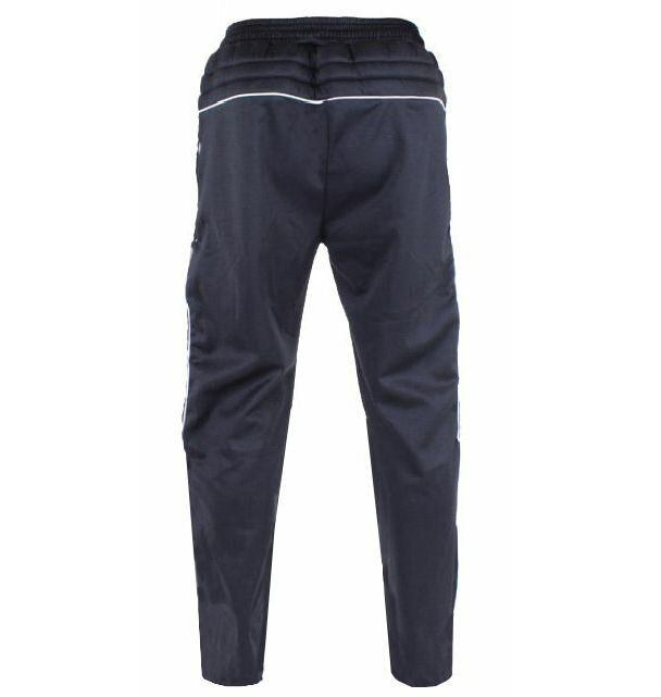 Brankárske nohavice vyztužené na bokoch a kolenách. Výztuž na nohaviciach slúži len ako štýlový doplnok a jej účel nie je akokoľvek chrániť brankára. Tento výrobok nespĺňa podmienky z nariadenia vlády č. 21/2003 Zb., ktorým sa stanovia technické požiadavky na osobné ochranné prostriedky. Funkcia výztuží je teda len a len estetická. Materiál: 100% polyester
