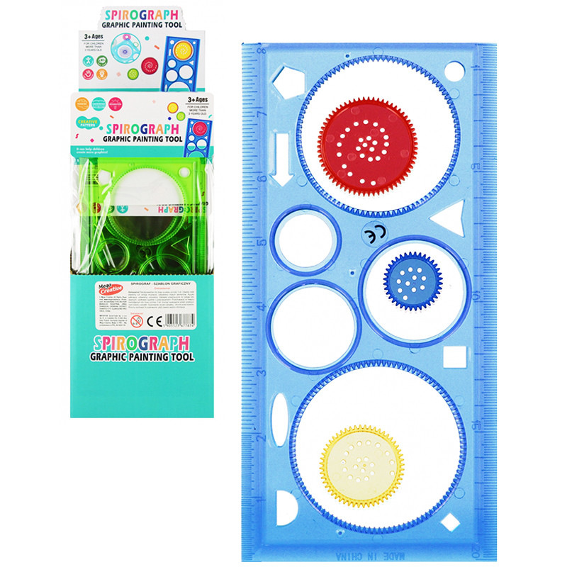 Grafická šablóna sada, má rozmery 11x26x1 cm. Na výber z viacerých variánt. Obsah sady základná šablóna, 3x kruhová šablóna. Balené v boxe po 24 ks. Cena je za sadu. Vhodné pre deti vo veku 3+ rokov.