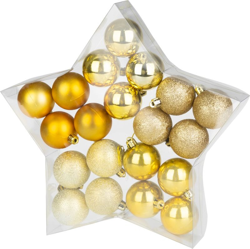 Gule MagicHome sú vhodnou ozdobou vianočného stromčeka a interiéru počas vianočného obdobia. Balenie obsahuje 20 ks vianočných gúľ a priemer je 5 cm. Farba gúľ je zlatá.
