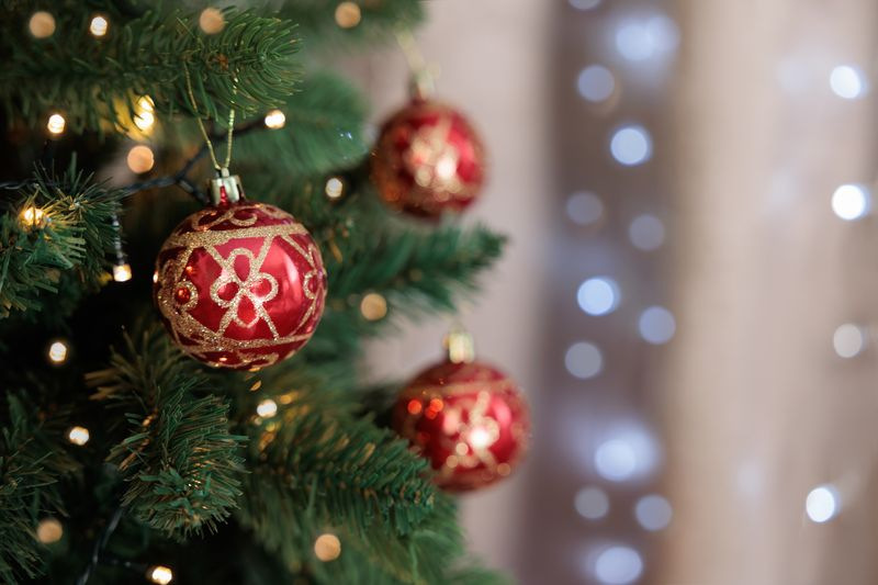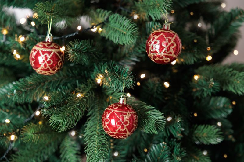 Súprava ozdôb na stromček slúži na slávnostné ozdobenie vianočného stromčeka. Pozostáva z 3 ks vianočných gulí so zlatým ornamentom s priemerom 6 cm. Farba je červená.