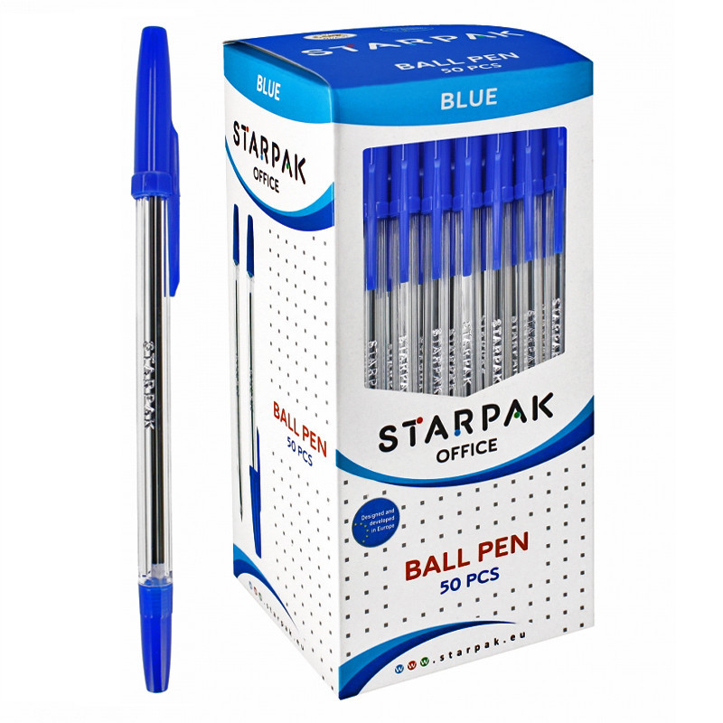 Guličkové pero modré, šírka línie písania je 0,7mm a modrý atrament. Balené po 50 kusoch. Cena je za 1 kus. Vhodné pre deti 3+.