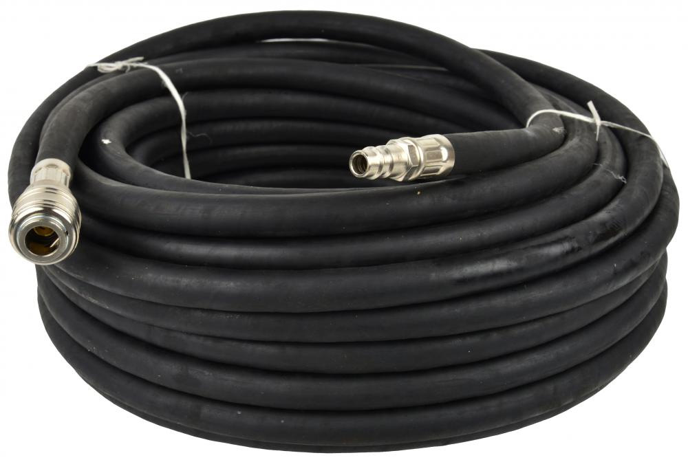 Profesionálna pneumatická gumová hadica dlhá 20 metrov. Hadica je vyrobená z materiálu odolného voči oleju a oderu. Flexibilná guma zabraňuje trvalej deformácii.