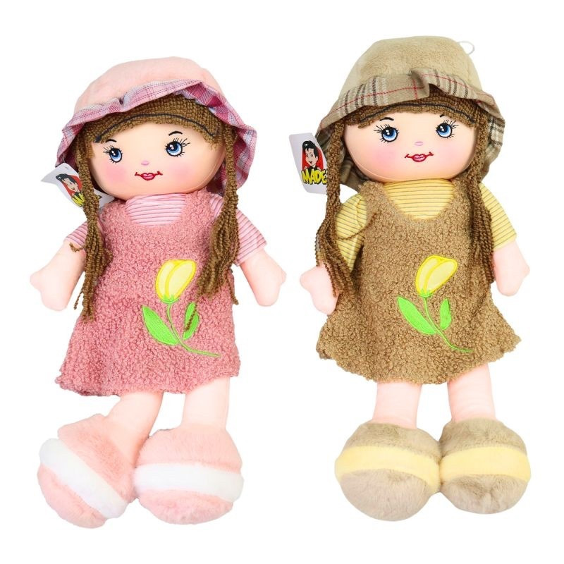 Roztomilá handrová bábika s klobúčikom je ideálnou spoločníčkou pre všetky deti. Mäkučké textilné prevedenie, milá tvárička a príjemné farby z nej robia obľúbenú hračku na maznanie aj hranie rolových hier. Vďaka veľkosti 40 x 20 cm sa perfektne drží v rukách a je vhodná už od 3 rokov. Bábika je zabalená v sáčku.