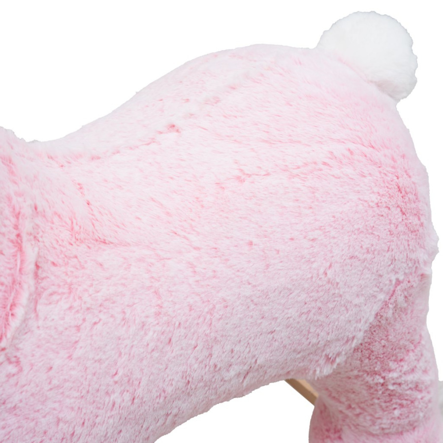 Stabilné drevené lyžiny a úchyty na držanie zaručujú bezpečné hojdanie, zatiaľ čo melódia aktivovaná stlačením rozvíja sluch a prináša deťom radosť. Zajačik má pohodlné sedadlo bez operadla – ideálny pre staršie deti, ktoré už vedia udržať rovnováhu.