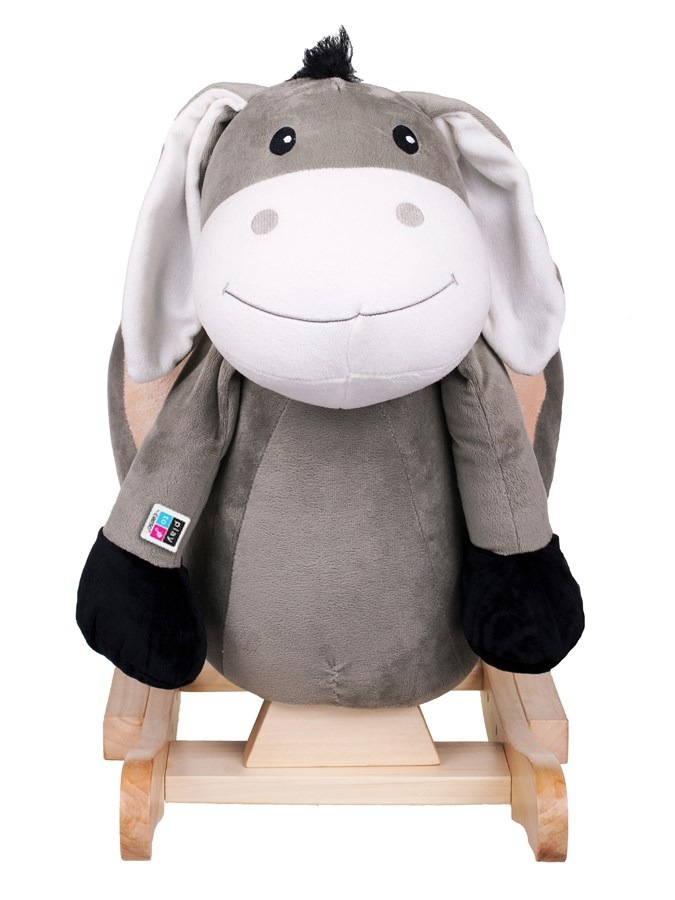Hojdací oslík PlayTo s mnohými vychytávkami. Hračka má sedlo, drevené rukoväte a drevené stúpadlá na nohy. Oslík po stlačení labky hrá melódiu. Labky sú mäkké a pohyblivé. Sedlo je pohodlné, bezpečné a krásne tvarované. Vhodné pre deti od 18 mesiacov. Rozmery: Hračka s hojdacou časťou: dxvxš: cca 65x60x40 cm. Výška sedadla od zeme: cca 25 cm. Kresielko: šxhxv: cca 20x17x26 cm. Stúpadlo na nohy: dxs: cca 13x3 cm.