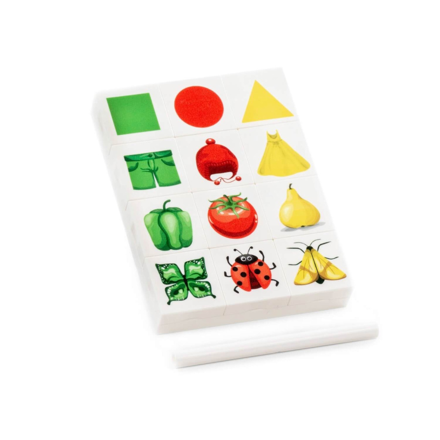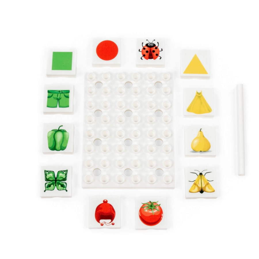 Hra Asociácie - Farby a tvary je zábavná a vzdelávacia hra určená pre deti predškolského veku a základných škôl. Cieľom hry je spájať predmety so základnými tvarmi štvorec, kruh a trojuholník podľa farby a tvaru. Každý rad bude mať inú tému. Jasné a farebné obrázky robia proces ešte pútavejším a vzdelávacím. Hra Asociácie - Farby a tvary podporuje logické myslenie, zlepšuje jemnú motoriku a trénuje sústredenie. Sada obsahuje kartičku s vopred pripraveným obrázkom a hernými možnosťami, ako aj deliacu priečku na vyberateľné dieliky.