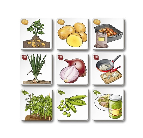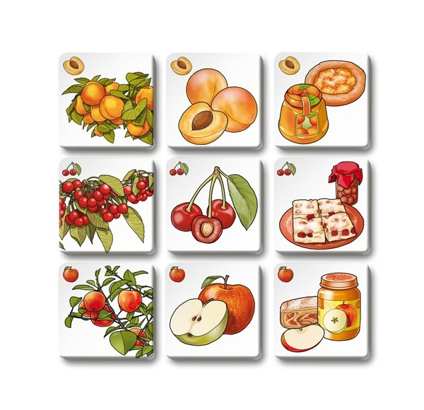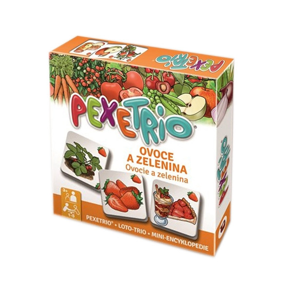 Pexetrio OVOCIE A ZELENINA je didaktická a zábavná hra, v ktorej sa naučíte poznávať rôzne druhy ovocia a zeleniny a zistíte, čo sa z nich vyrába.