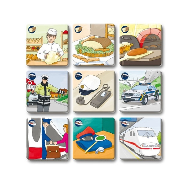 Pexetrio POVOLANIA je didaktická a zábavná hra, v ktorej sa naučíte pomenovať rôzne druhy povolaní, rozoznať ich typické odevy, pomôcky a nástroje, ktoré pracovníci používajú.