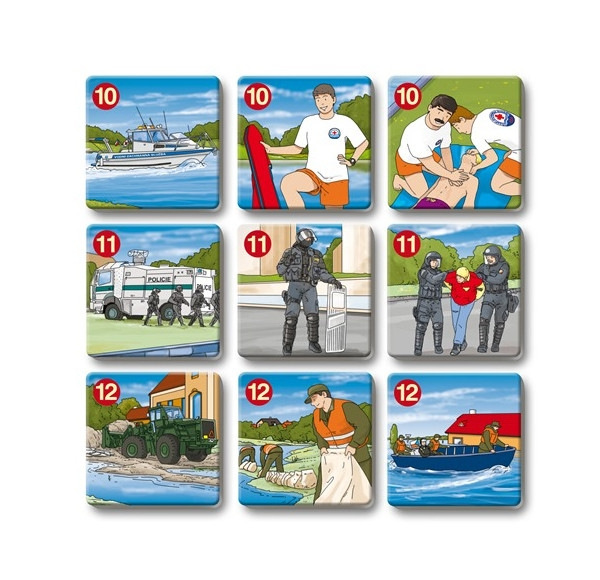 Pexetrio ZÁCHRANÁRI je didaktická a zábavná hra, v ktorej sa naučíte pomenovať rôzne záchranárske profesie, rozoznať ich typické odevy, techniku a nástroje, ktoré záchranári používajú.