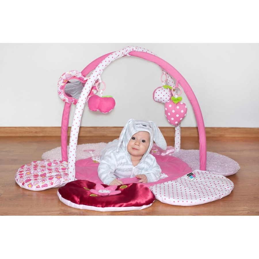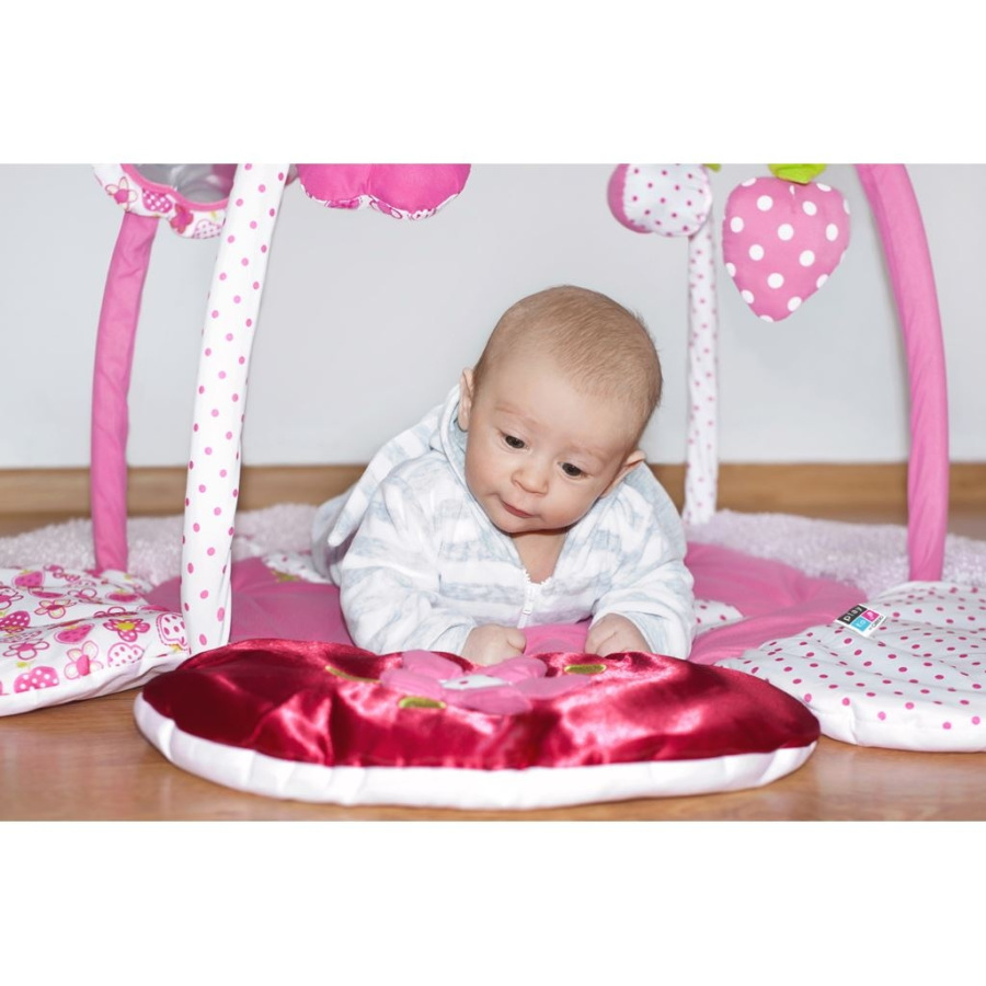 Krásna originálna vzdelávacia hracia deka PlayTo s hrazdou rozvíja detskú predstavivosť vďaka spoznávaniu farieb a tvarov. Hracia deka v tvare kvetinky je v krásnej žiarivej farbe. Rozvíja zmysly hmatu, zraku aj sluchu vďaka šuštiacim a pohyblivým častiam. Príjemný a mäkký materiál umožňuje pohodlné ležanie na brušku alebo chrbte a umožňuje slobodu pohybu Vášho dieťaťa. Bábätko tak môže získať bezpečný útulnejší priestor a motivuje na dvíhanie sa dieťatka. Hračky je možné z hrazdičky ľahko zložiť. Rozmery: priemer: cca 100 cm, výška cca 54 cm. Vhodné pre deti od 3 mesiacov.
