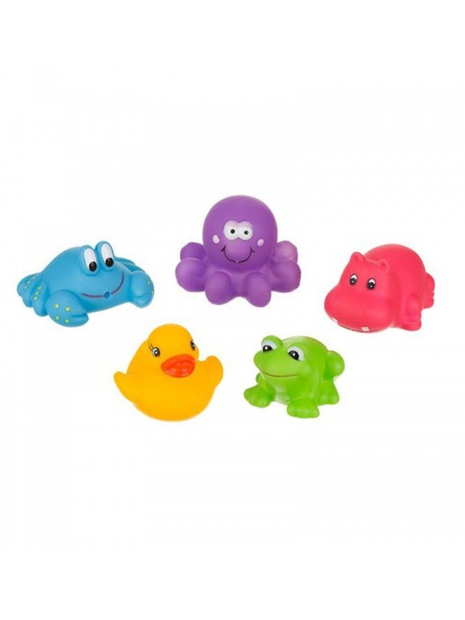 Farebné hračky do kúpeľa Akuku. Sada 5 roztomilých farebných hračiek - kačička, žabka, hrošik, krab, chobotnica. Ideálne na hranie vo vani. Veselé farby priťahujú pozornosť našich najmenších. Každá hračka má otvor, cez ktorý môže striekať voda. Zaoblené tvary zaručujú bezpečnosť počas hry. Vyrobené z bezpečných, vysoko kvalitných materiálov, neobsahujú bisphenol A. Výška hračiek 4 až 5 cm.