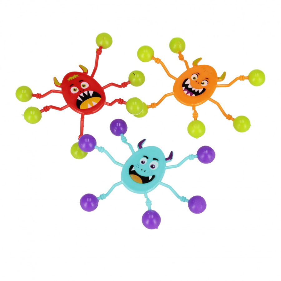 Zábavná lepiaca hračka v tvare vírusu, ktorá sa po hodení na hladký povrch pomaly kĺže dole a pri tom sa otáča. Deti rozosmeje a zabaví, ideálna na okno, zrkadlo či dlaždice. Balenie obsahuje 3 kusy. Určené pre deti od 3 rokov. Cena za kus.