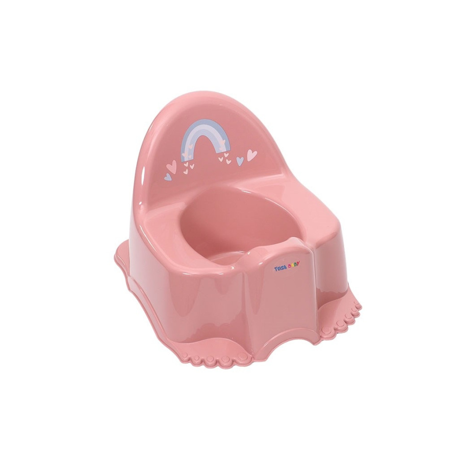 Detský nočník s obrázkom králikov v krásnych pastelových farbach. Je ľahký, kompaktný a vďaka svojmu tvaru, vysokej opierke chrbta a širokému sedátku poskytuje deťom pohodlie. Nočník po vyčúraniu hrá melódiu. Rozmery dxvxš cca 38x23x25 cm.