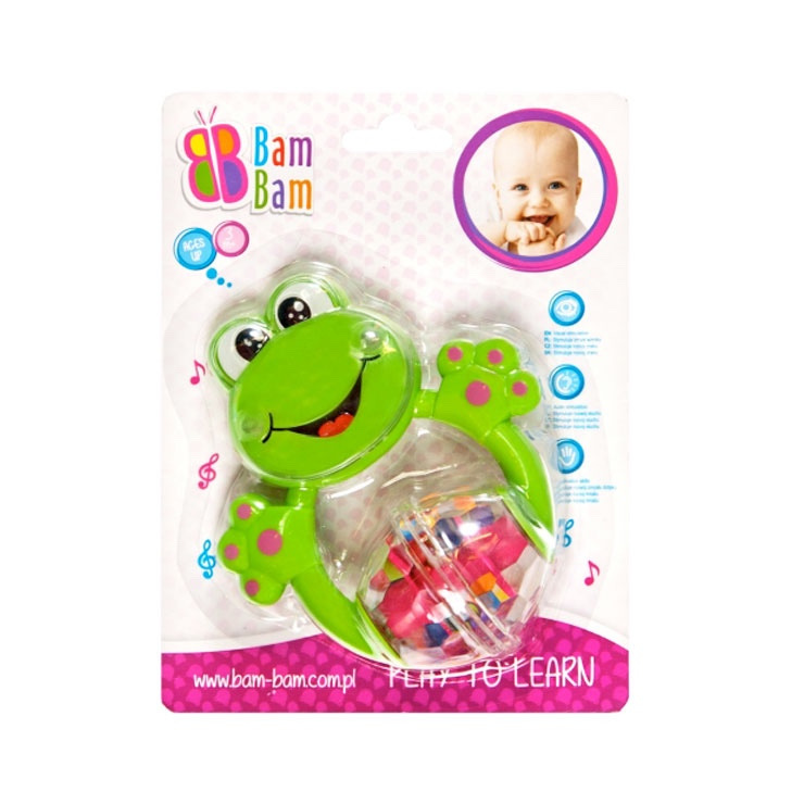Usmievavá žabka s početnými pohyblivými guľkami s dúhovou farbou poskytuje dieťaťu od 3 mesiacov veľa radosti. Vďaka úchytkám je ľahké udržať hrkálku v malých rukách. Hračka precvičuje zmysly, zrak, dotyk, sluch a manuálne zručnosti.