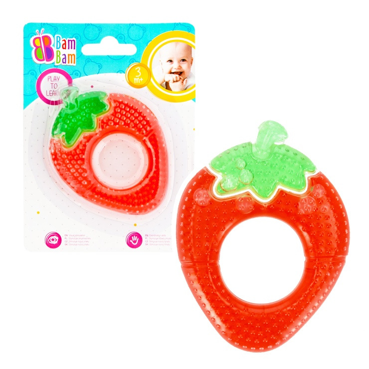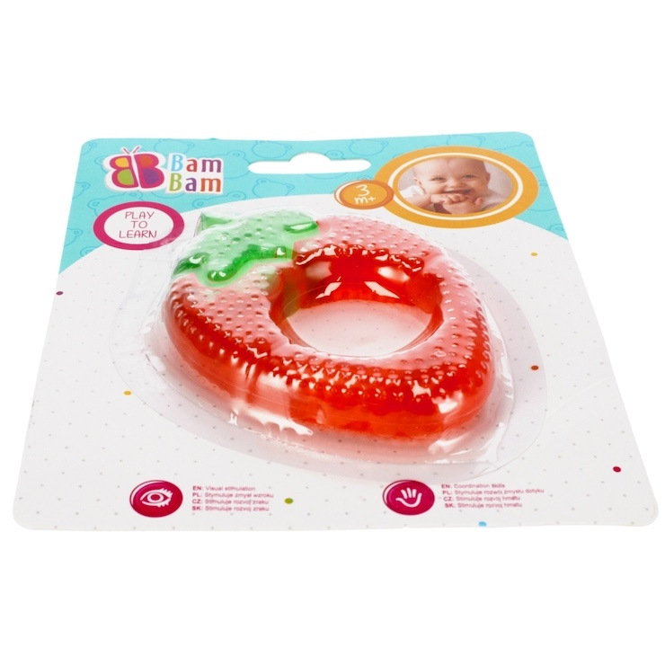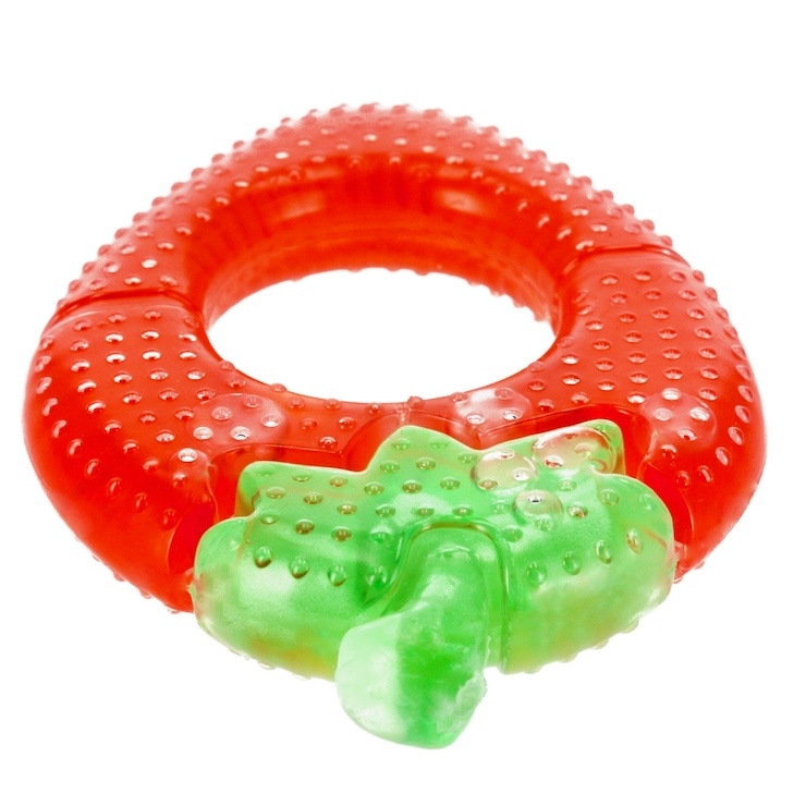 Hyrzátko Jahoda s vodným gélom je užitočný najmä v štádiu prerezávania zúbkov, keď sú ďasná opuchnuté. Vyrobené z mäkkého materiálu, ktorý možno rýchlo schladiť v chladničke, prináša úľavu a upokojenie bez podráždenia ďasien bábätka.