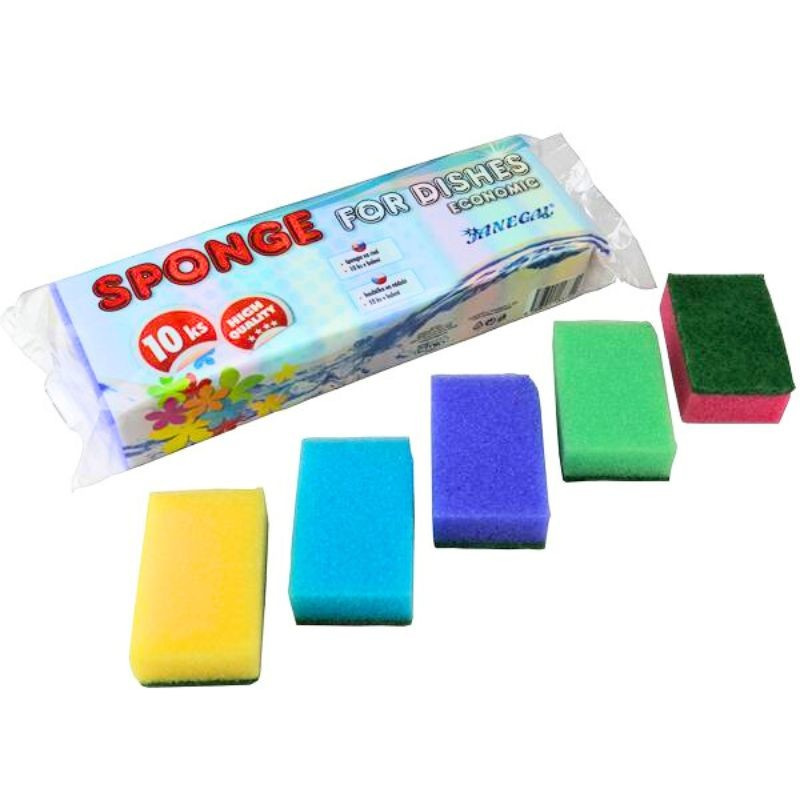 Farebné hubky na riad sú určené na každodenné umývanie riadu, drezov a kuchynských povrchov. Mäkká penová strana vytvára bohatú penu, zatiaľ čo drsná strana účinne odstraňuje zaschnuté nečistoty a mastnotu. Balenie obsahuje 10 kusov hubiek v rôznych farbách.