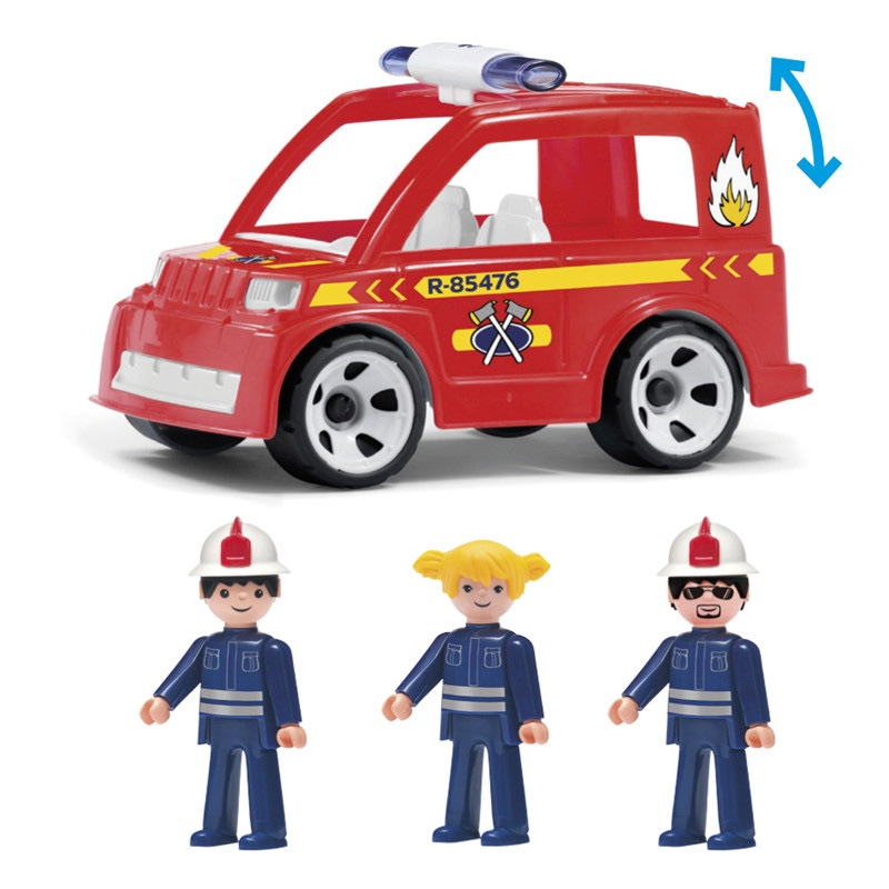 Posádka zásahového hasičského auta je vždy pripravená na výjazd. Balenie obsahuje: hasičské auto s otvárateľným kufrom a majákom, doplnky - hasičské vybavenie, 3 figúrky Igráčka: vodiča, hasičov a hasičku.
