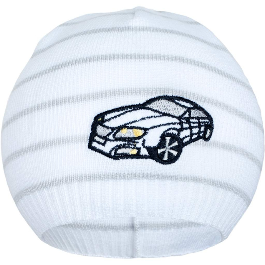Jarná čiapočka New Baby s autíčkom bielo-svetlo sivá 104 (3-4r)