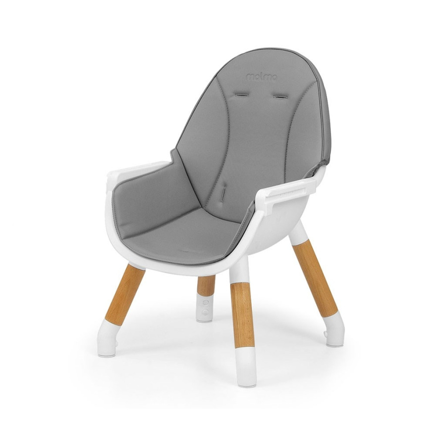 Päťbodové bezpečnostné pásy so širokými a mäkkými ramennými vypchávkami chránia dieťa pred odreninami. Čalúnenie stoličky Malmo z ekokože je odolné proti znečisteniu a ľahko sa čistí. Tácka má priehlbinu, ktorá zabraňuje skĺznutiu predmetov.